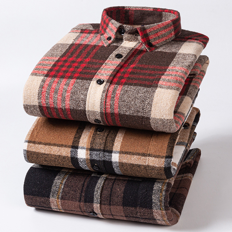 大きいサイズの新疆長絨綿綿綿毛磨き保温シャツ男性カジュアル格子長袖シャツ中高年カジュアル