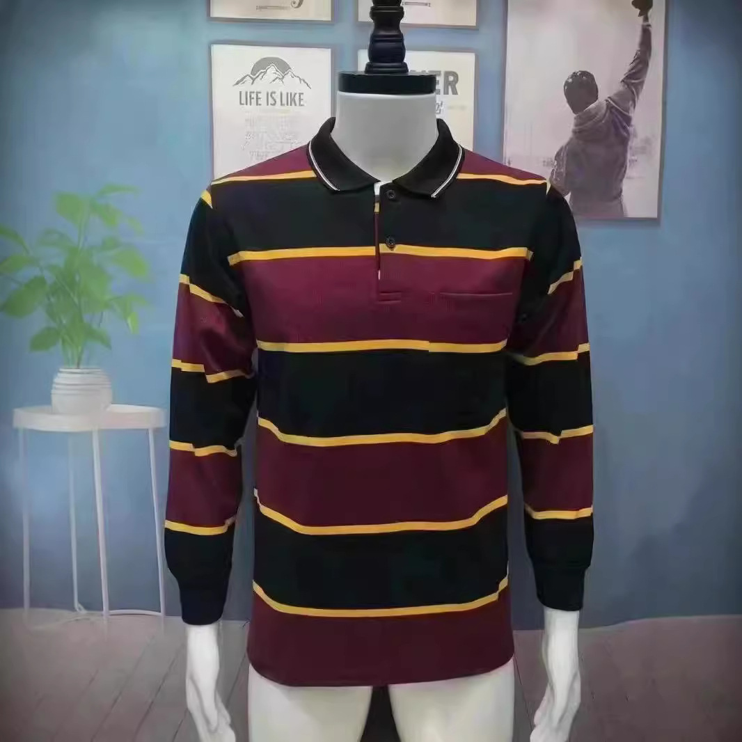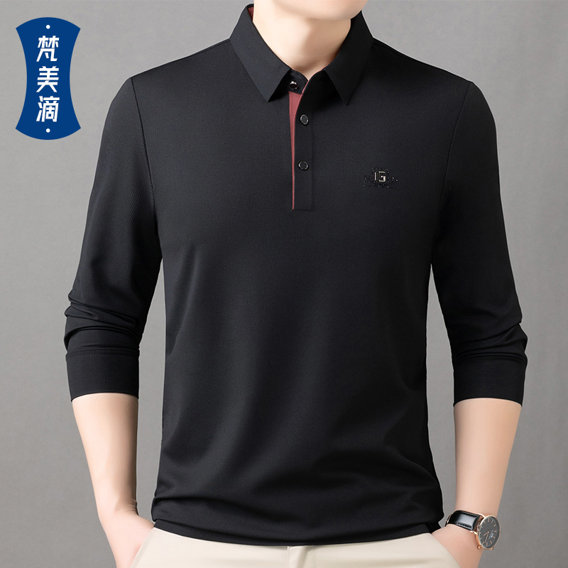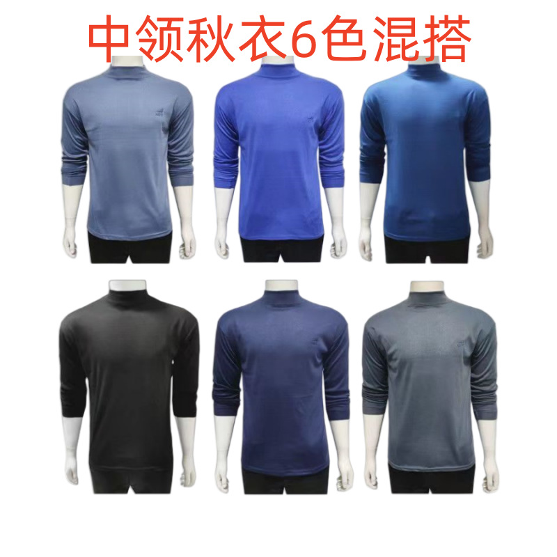 春秋の男性の秋の服の半高襟の丸首のポリエステル綿の純色の長袖のtシャツの中高年の紳士服の上着の卸売り
