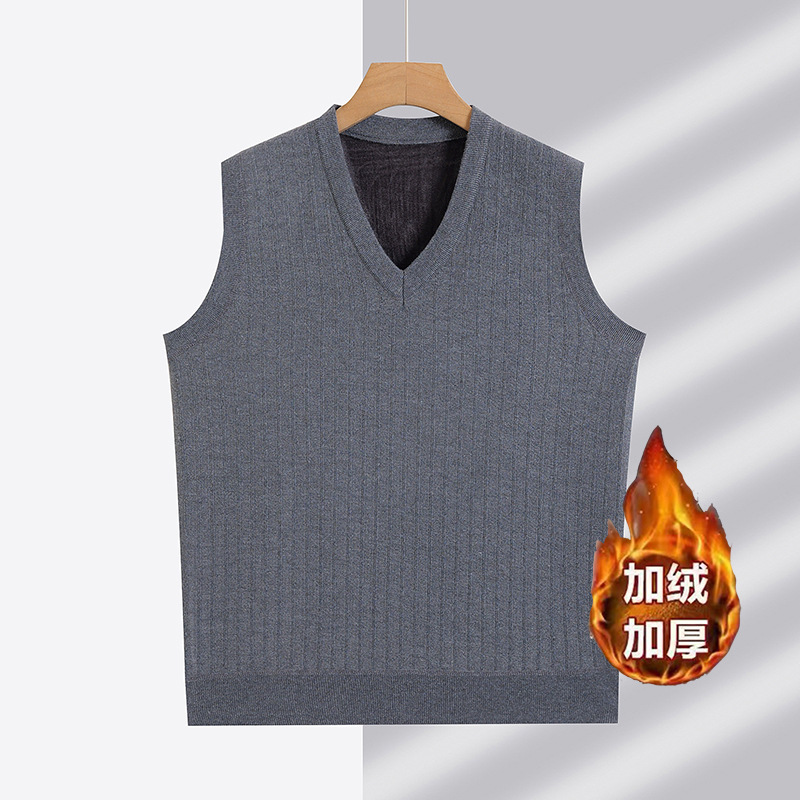 冬の中高年のベルベットはvネックのニットベストを厚くして、お父さんは底をつけて保温馬甲を着ることができる