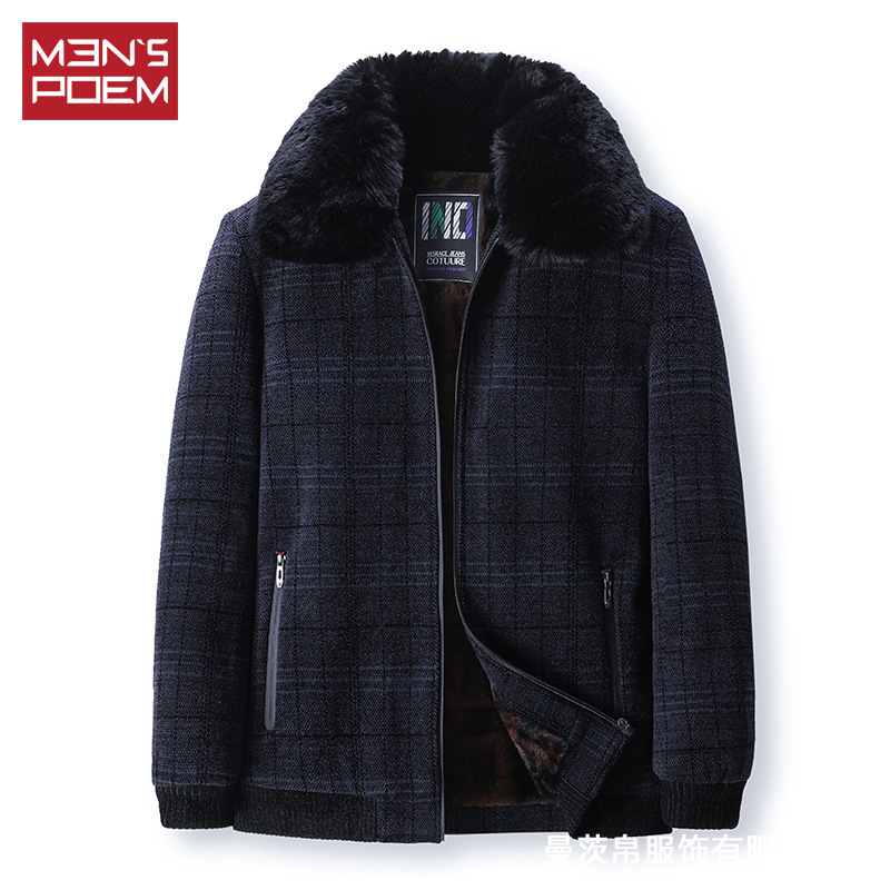 男性のクロスボーダーとベルベットの綿服の中で高齢者の秋冬のお父さんは工装ジャケットの綿入れの新しいカジュアルコートを厚くした