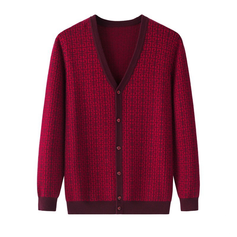 中高年男性服秋冬新作ウールセーター厚手プラス大きいvネックカーディガンコート長袖メリヤス大きいサイズセーター