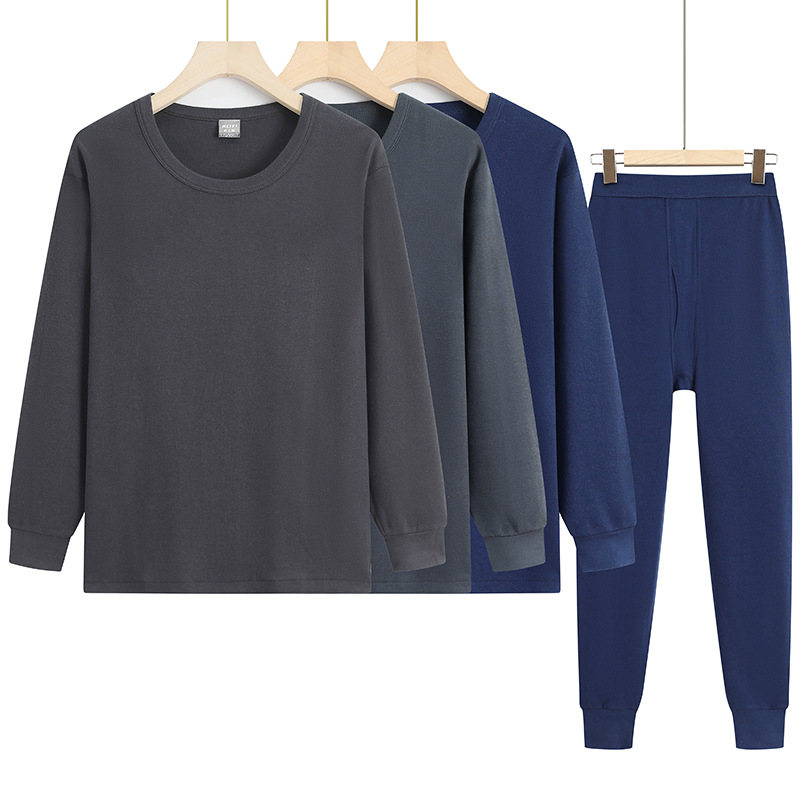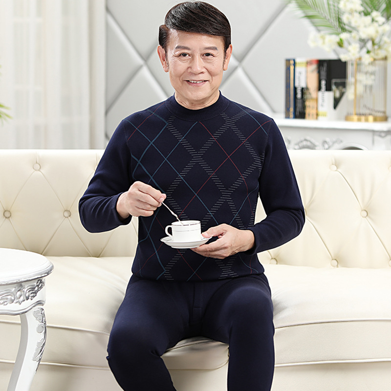 中高年男性2点セット秋衣秋ズボン保温下着セット丸首ニットとベルベットの男性父親服