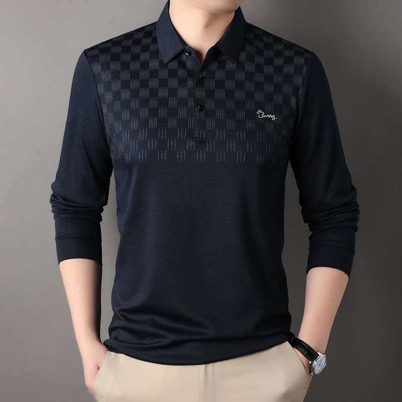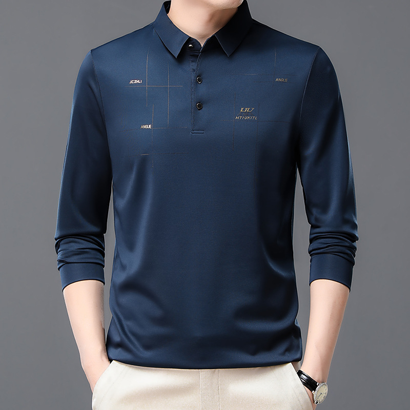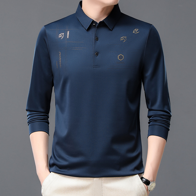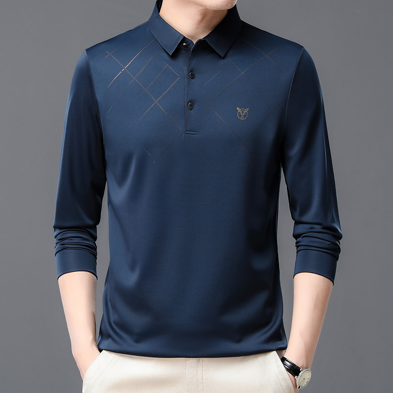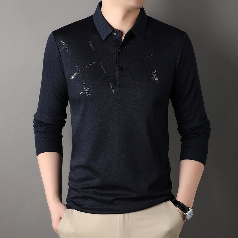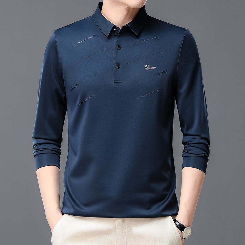 2023メンズ抗菌tシャツ長袖秋新作ファッションホットドリル襟開き上着中年お父さん服poloシャツ
