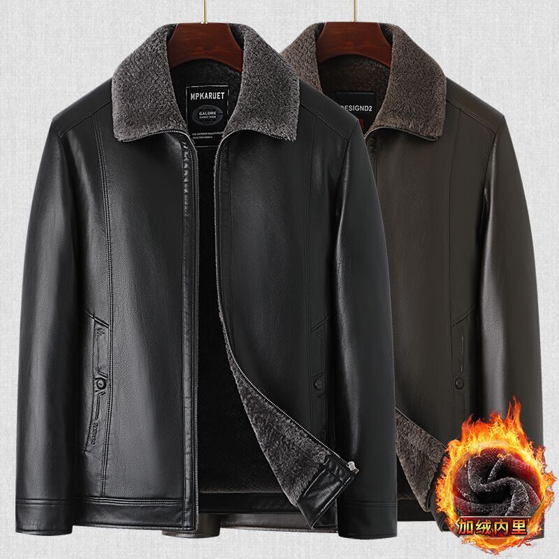 父の冬服puコートとベルベットの厚手50歳の中高年男性服ビジネスカジュアル防水防風ジャケット