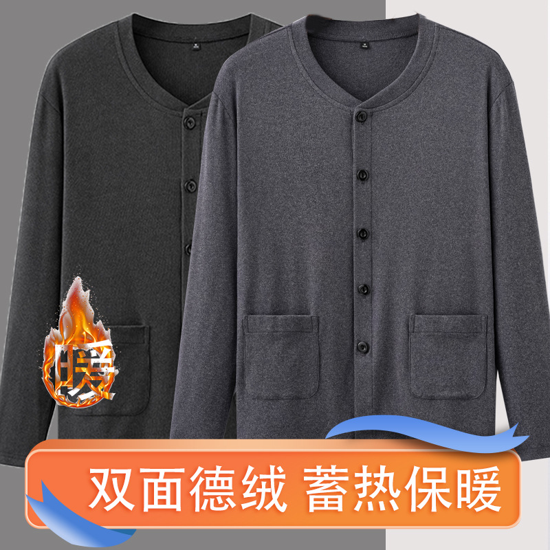 中高年カーディガン長袖男tシャツ徳絨毛秋冬発熱繊維男性シャツ保温秋装上着秋