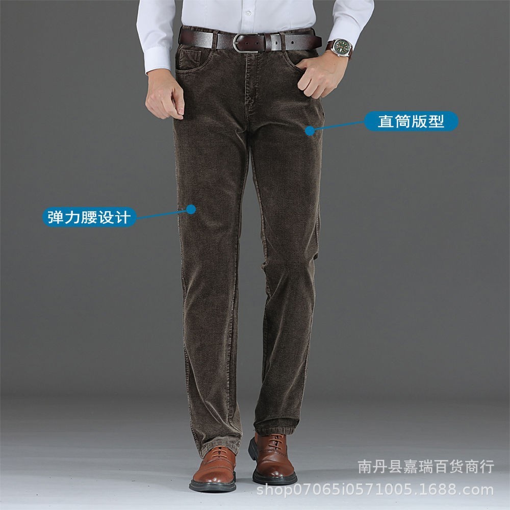 中高年のコーデュロイの男性のズボンはカジュアルでゆったりしています。