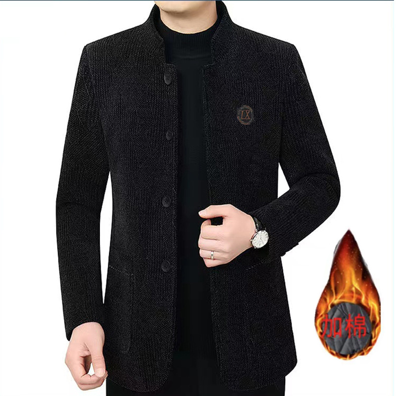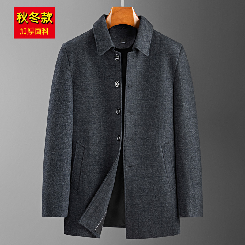 秋冬男性のお父さんの上着のコートは保温して襟を立てて綿を入れて厚くします。