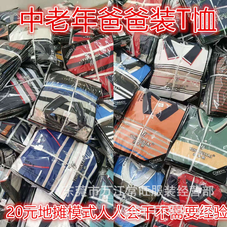 広州の尾の商品の5-10元の中高年の紳士服は半袖のtシャツの対外貿易の在庫のお父さんの服の露店の商品の供給源をひっくり返します。