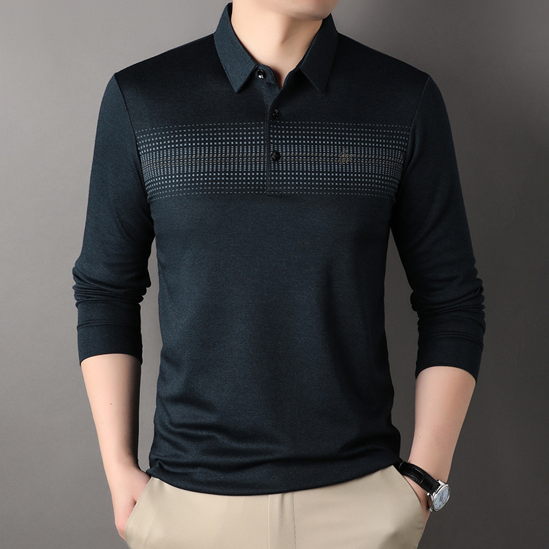 中年男性長袖tシャツ秋のゆるいお父さんはストライプを着てビジネスの氷糸ポロシャツのtシャツ男をめくった