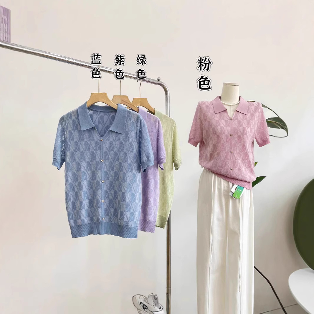 ママのアイスシルクセーター夏の新しい半袖Tシャツ中年女性のリヨセルVネック気質トップ多用途スタイル