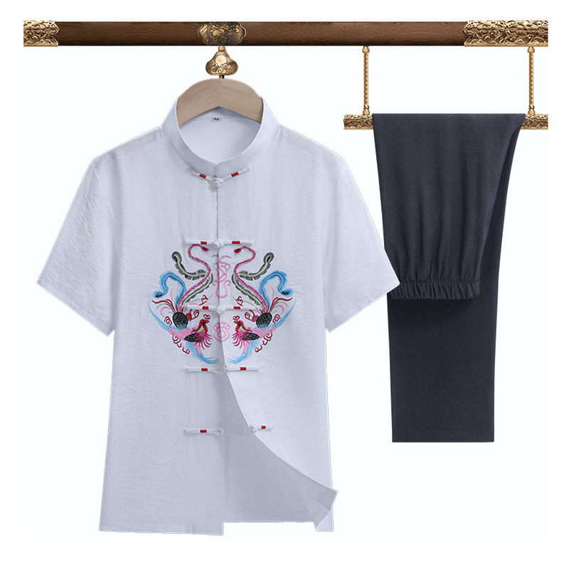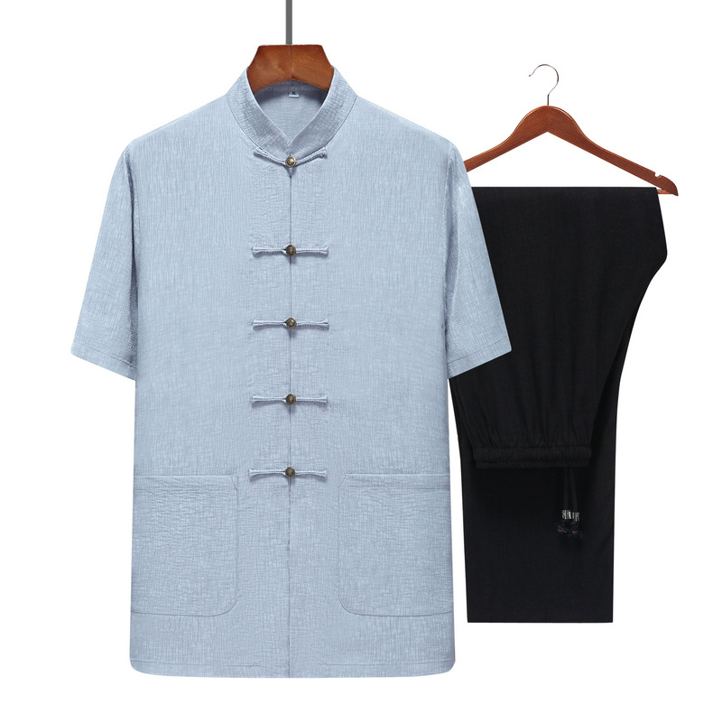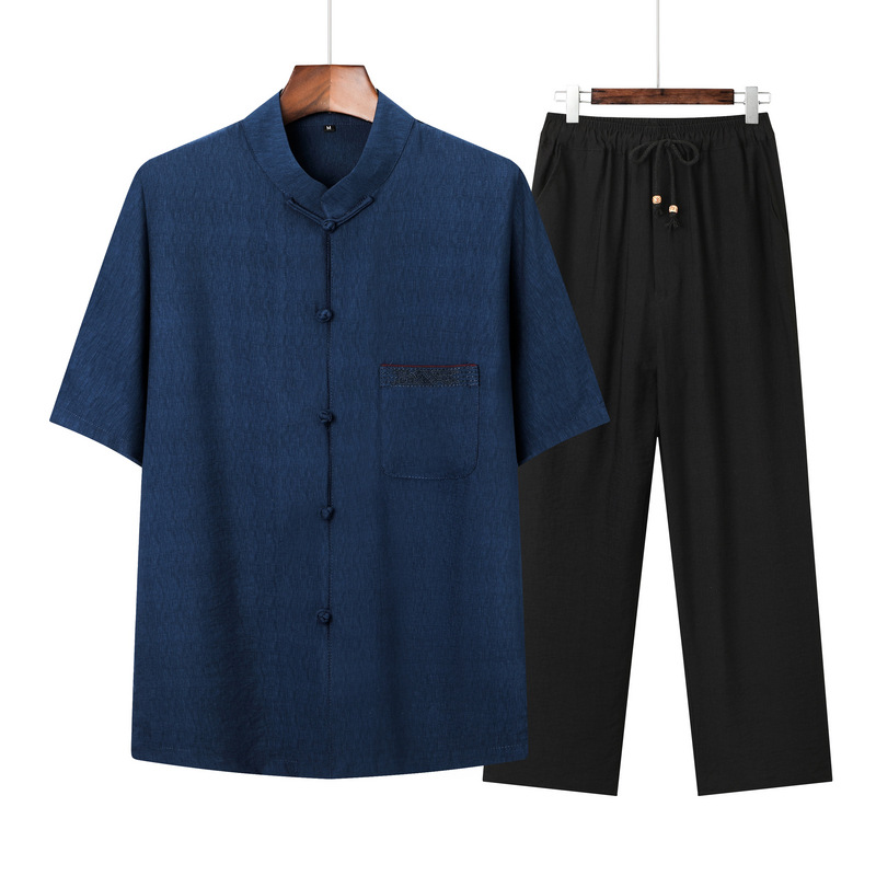 中高年唐装メンズ半袖スーツお父さん夏カジュアルおじいちゃん夏太極拳スーツ高齢者服漢服