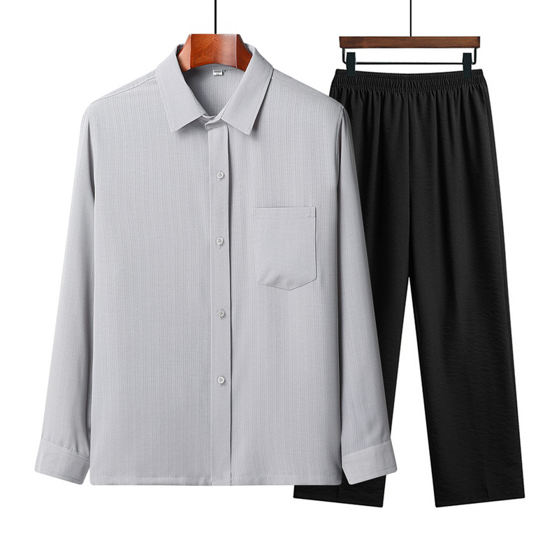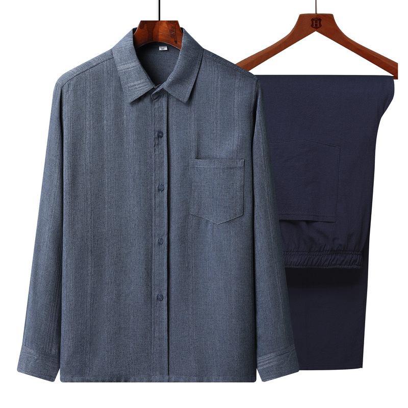 唐装メンズ長袖中高年新中国風漢服春夏お父さんシャツおじいちゃんシャツ2点セット