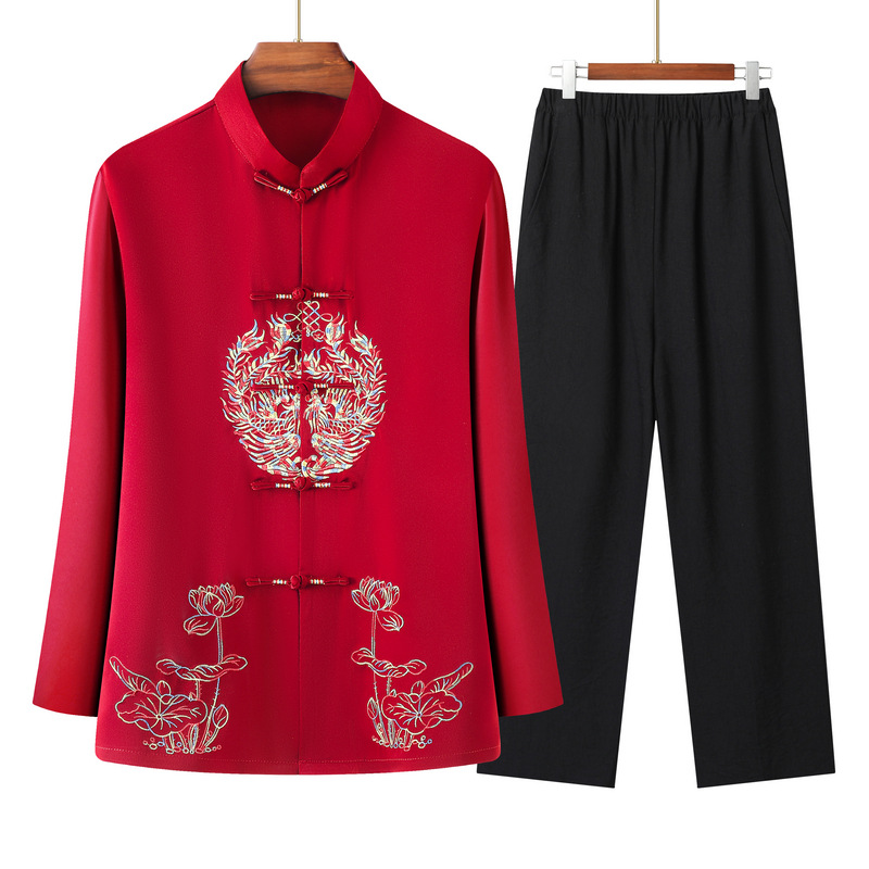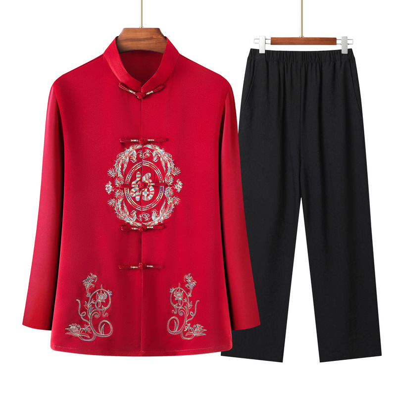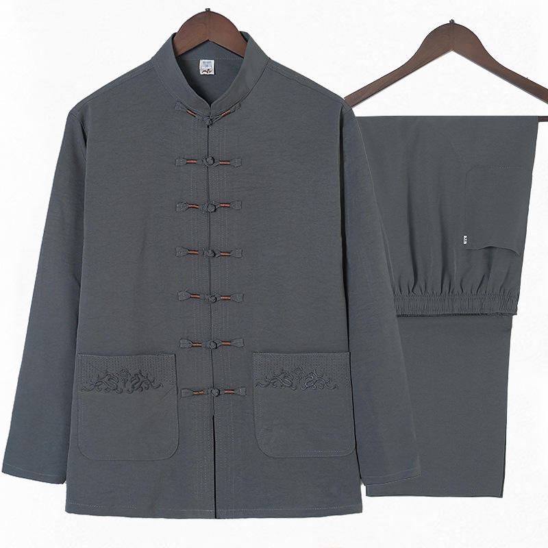 中高年男性唐服、長袖カジュアルスーツ、お父さん春夏服、中国太極拳服、漢服、おじいちゃん服