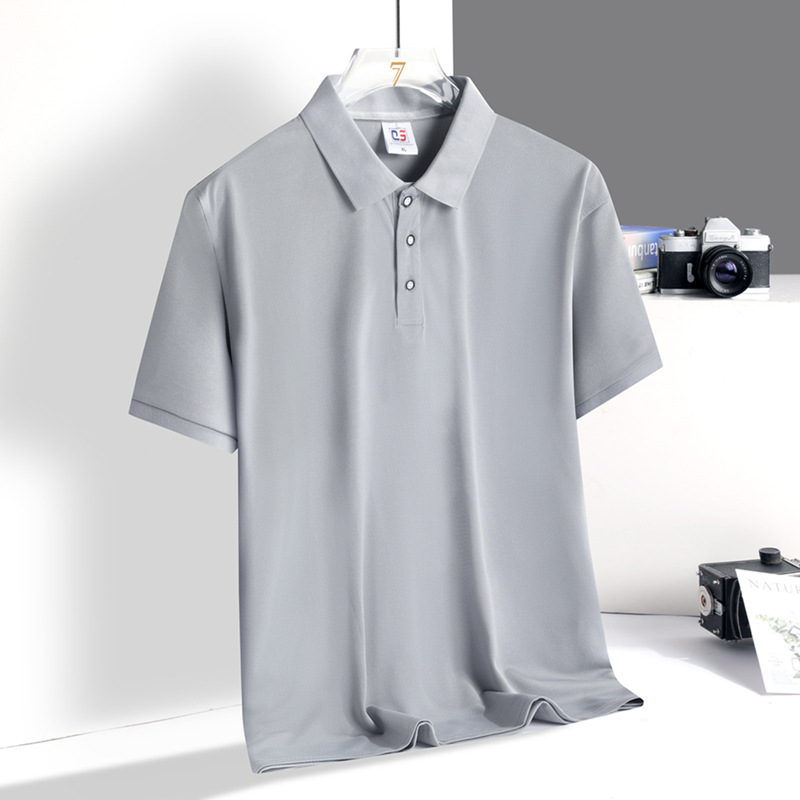 大きいサイズ無地ポロシャツメンズ夏半袖 Tシャツメンズラペルお父さん夏アイスシルク薄手カジュアルシャツ