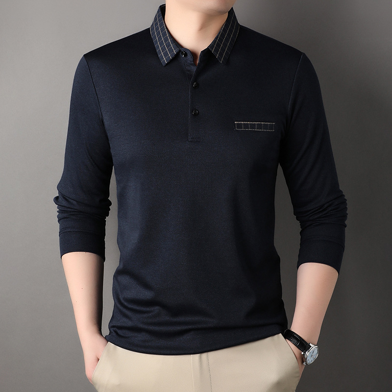 シニア5a抗菌メンズtシャツ長袖秋新作ビジネス正装poloシャツ中年お父さん折り襟トップス
