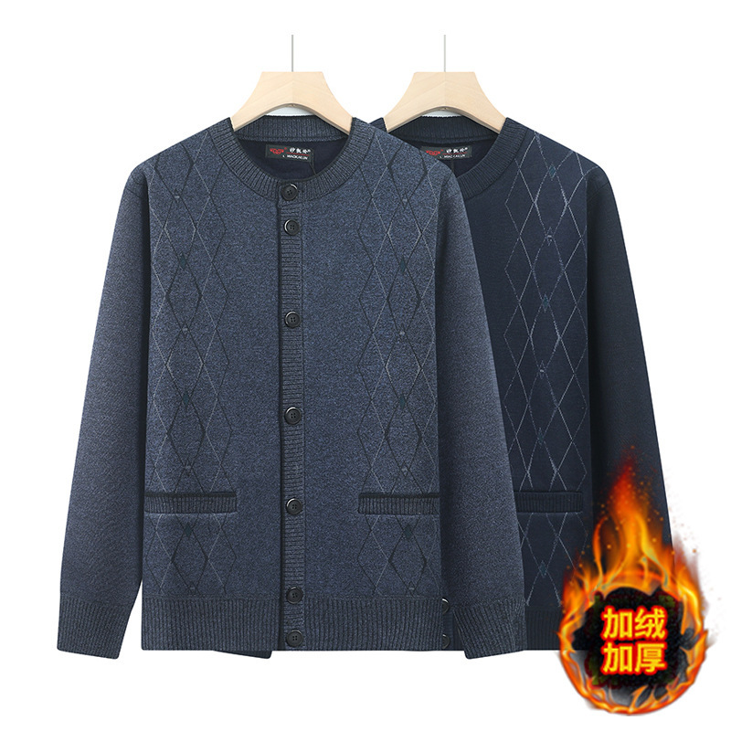 お父さんカーディガンセーターメンズラウンドネックセーター中高年紳士服おじいちゃんコート秋冬防寒着プラスベルベット