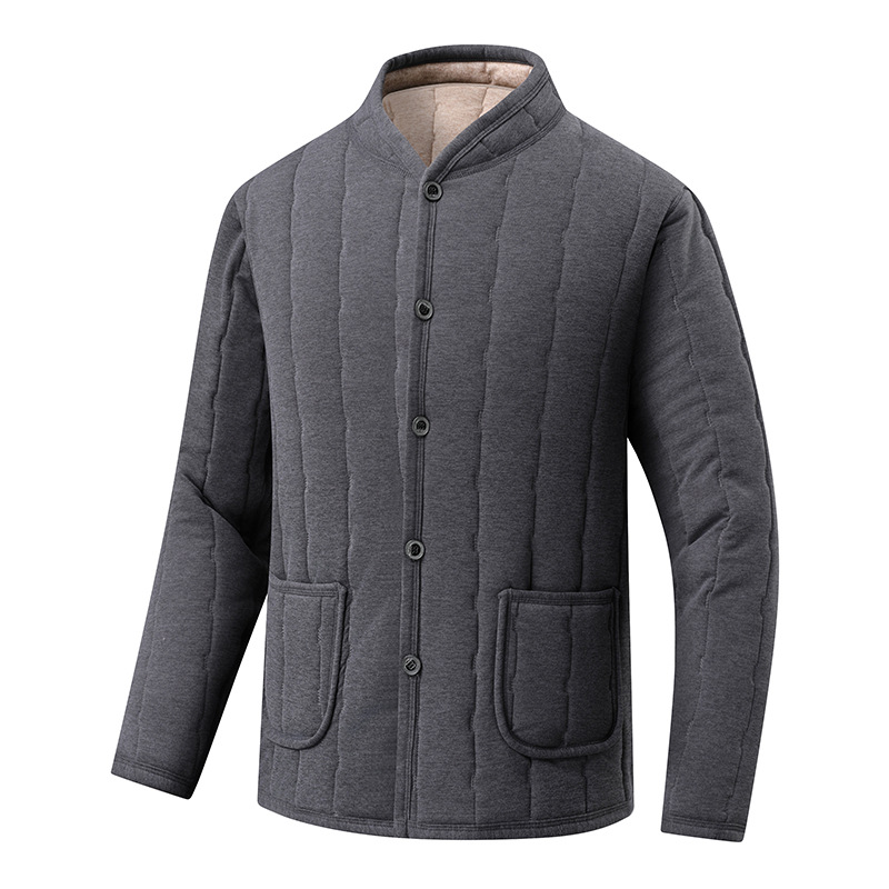 中高年男性の綿シルクパジャマ、お父さんの半袖ズボン、ホーム服、おじいちゃんの人工綿スタンドカラーカーディガンスーツ