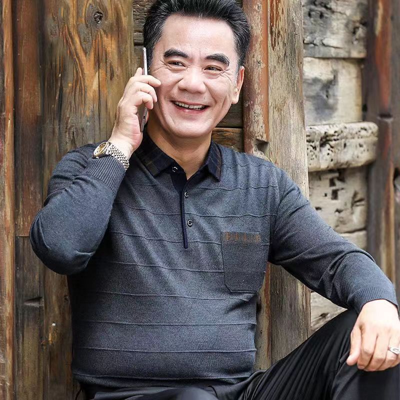 中高年おじいちゃんカジュアルトップス紳士服お父さん秋長袖Tシャツ中年男性薄底シャツ