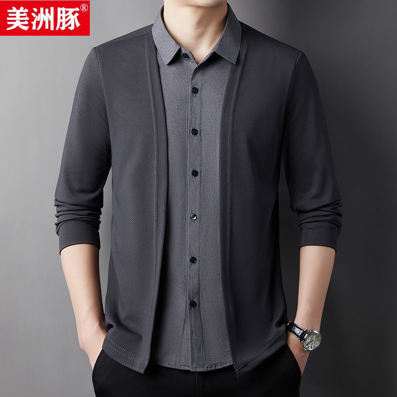 秋の新しい純色のビジネス男性のカーディガンは偽のシャツの襟の2つの男性のビジネスの底のシャツの男性が代行します。