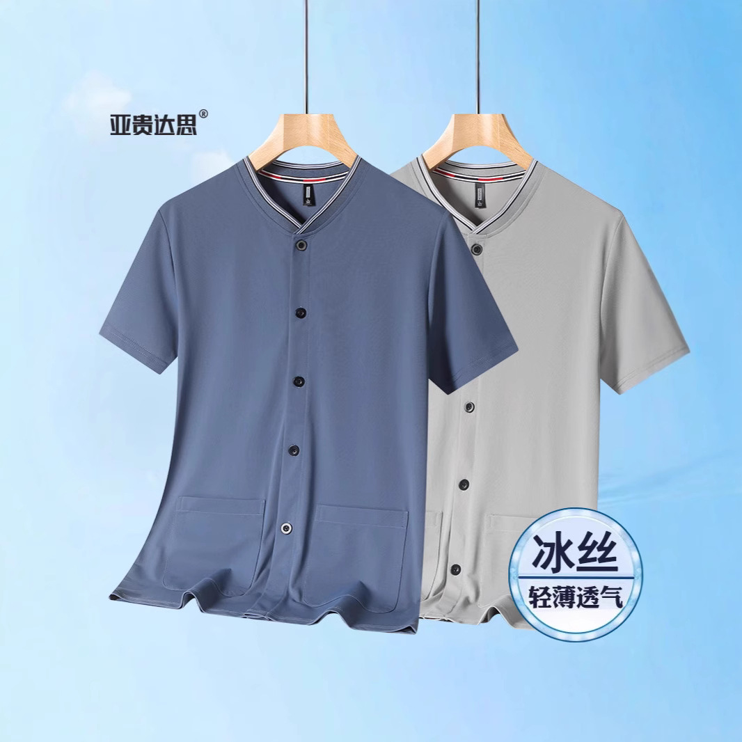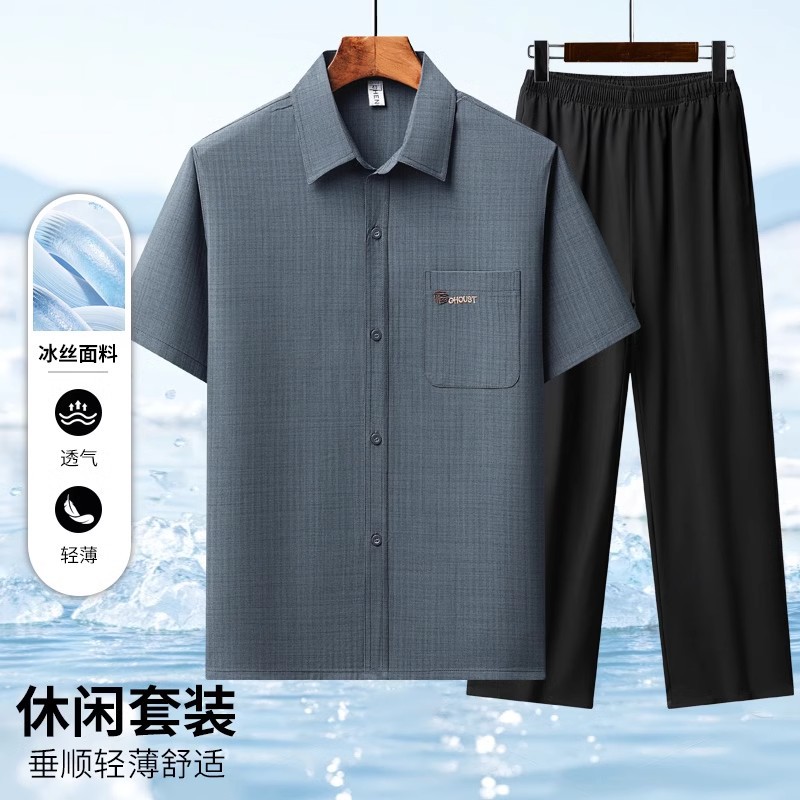 中高年男性の夏用アイスシルク半袖シャツ、お父さんスーツ、夏服、おじいちゃん服、夏用高齢者男性シャツ