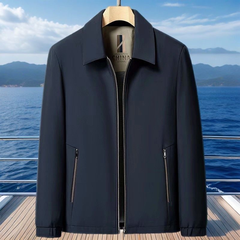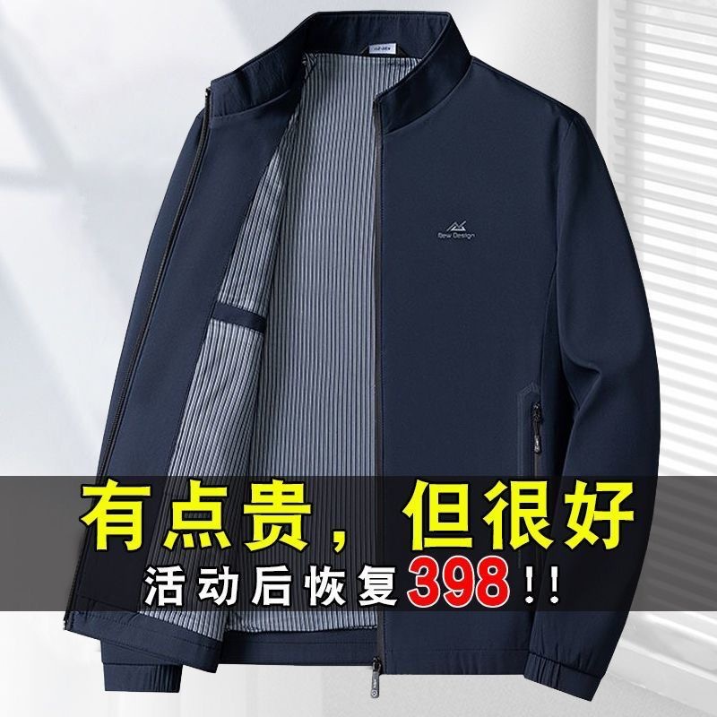 春と秋の新作中年紳士ビジネスカジュアルスタンドカラージャケット中高年男性ライト高級トップスお父さんジャケット