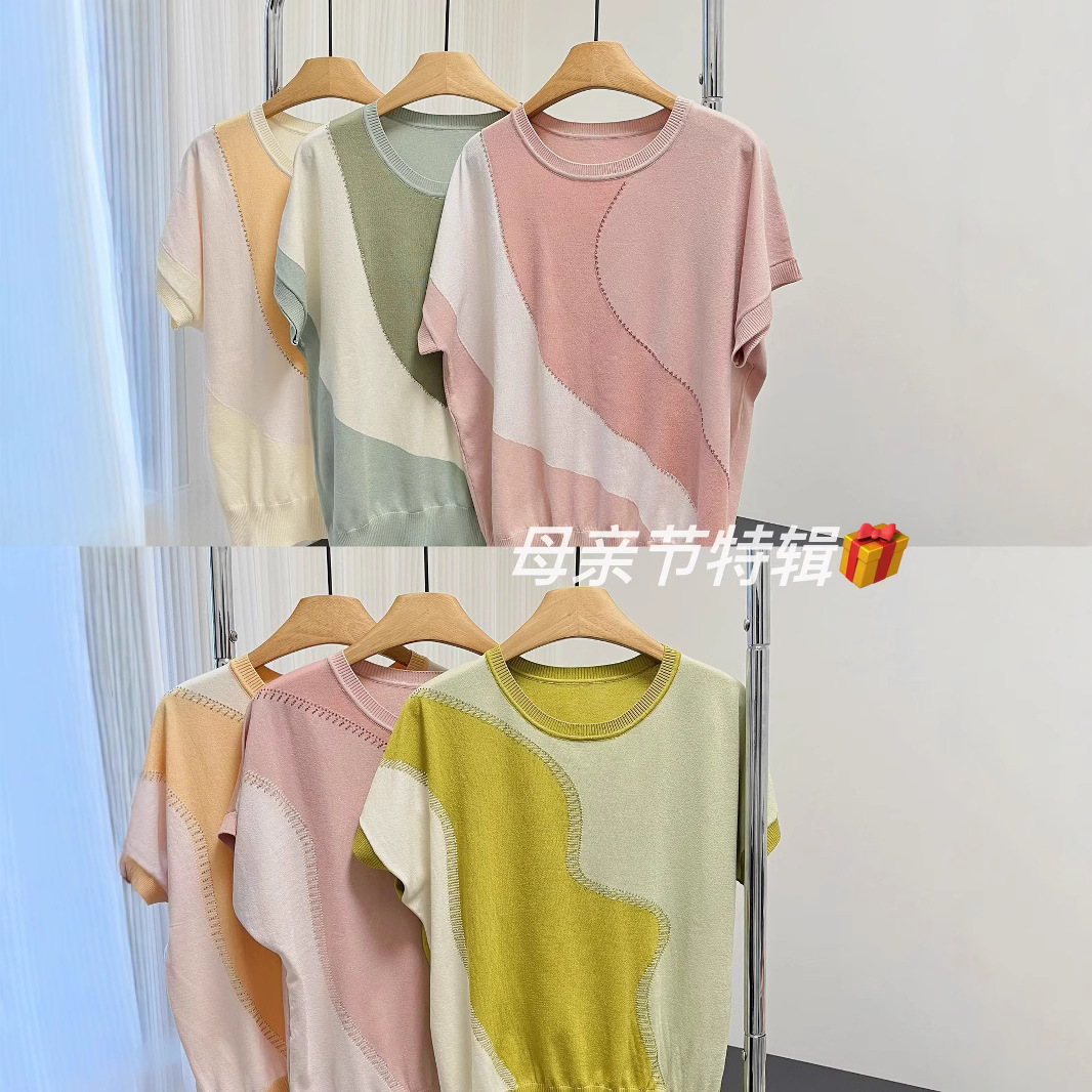 アイスシルクホットダイヤモンドママシャツ夏半袖Tシャツレディースおしゃれニットトップスおしゃれ中高年ゆったりお腹カバーシャツ