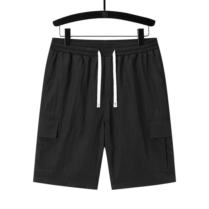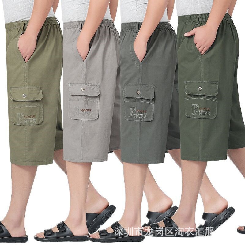 新しい中国風のアイスシルクカジュアルショーツメンズ夏薄いトレンディなアウターウェア中国風大きいサイズルーズ中高年五分パンツ