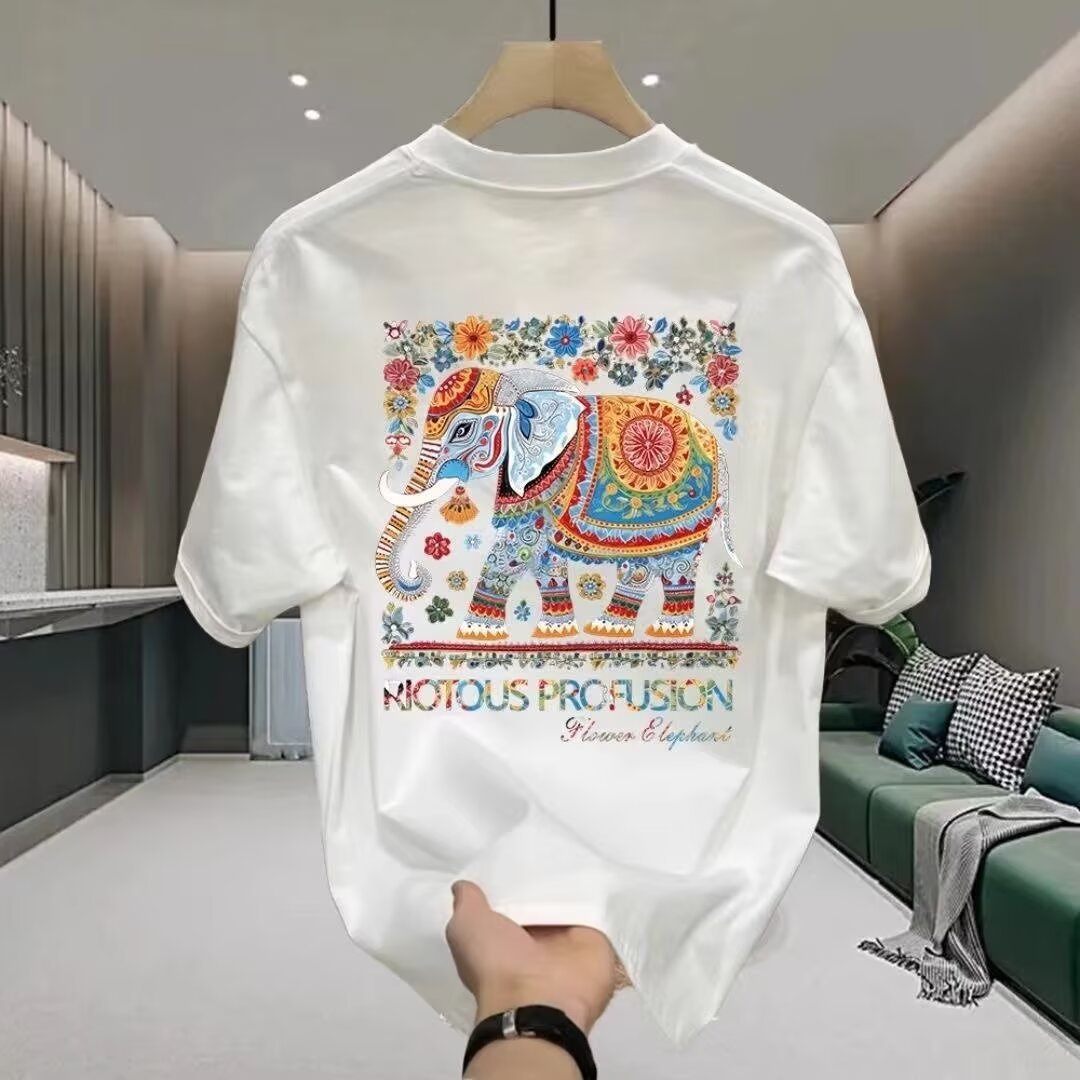 Huayu パーソナライズされたハンサムなトレンディな半袖 T シャツ花象トレンディなブランド Xijumai カジュアルラウンドネックトップ春夏