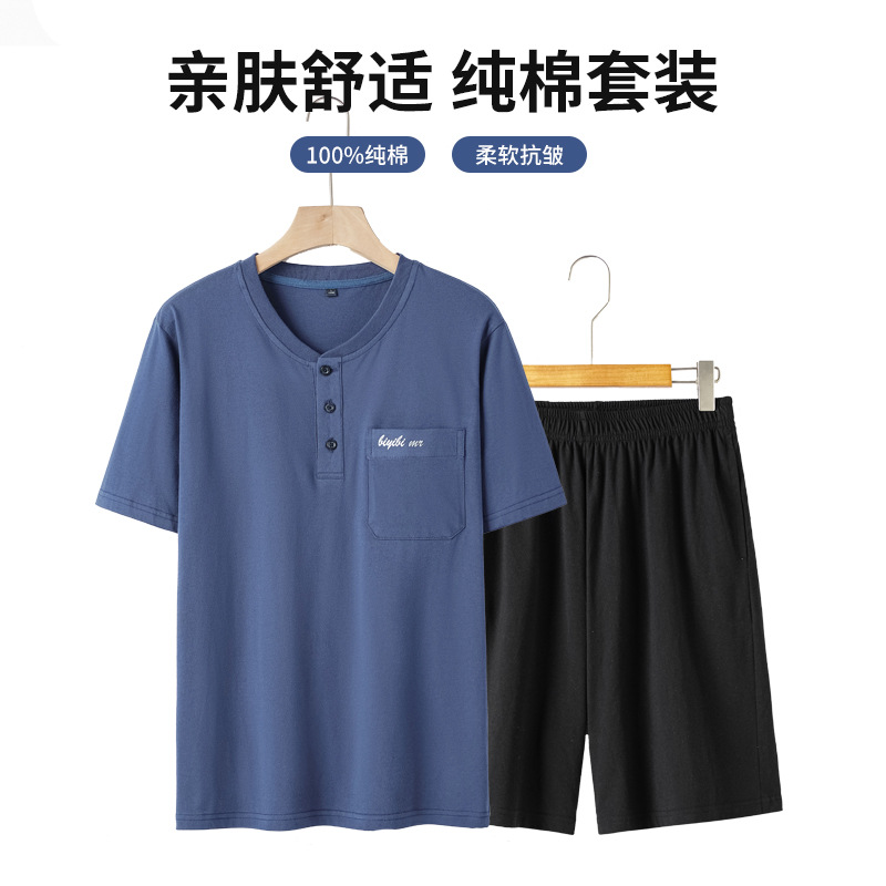 中高年男性用綿シルクパジャマ、お父さん綿シルクスーツ、高齢者半袖人工綿ホーム服、大きいサイズ、夏に屋外で着用可能