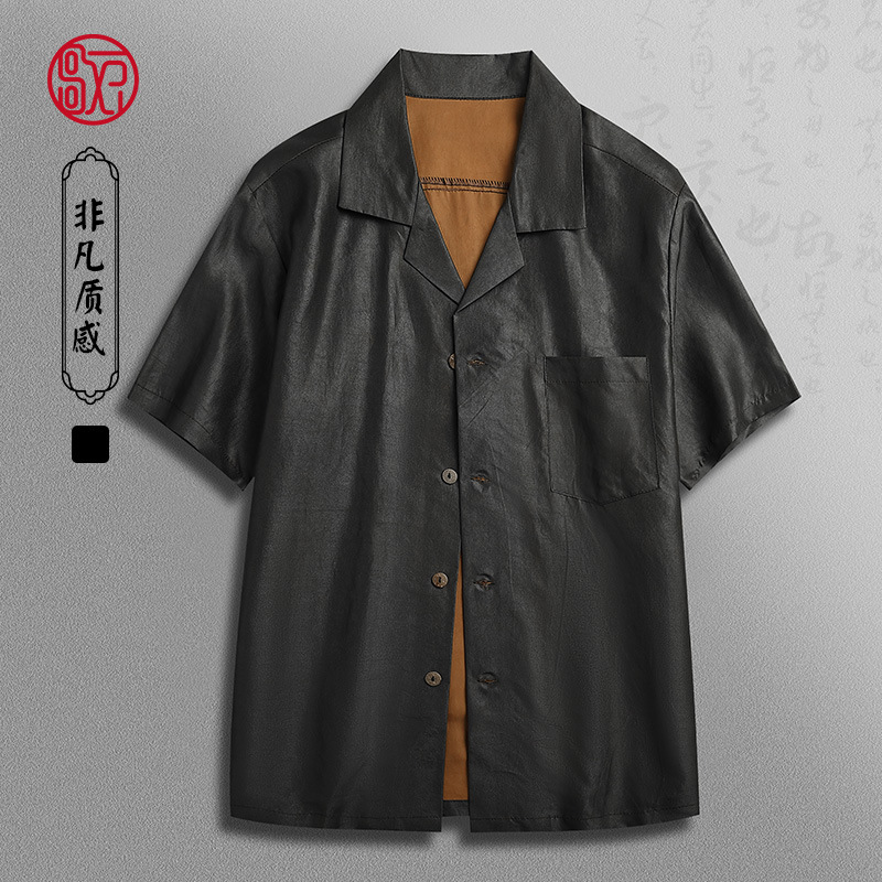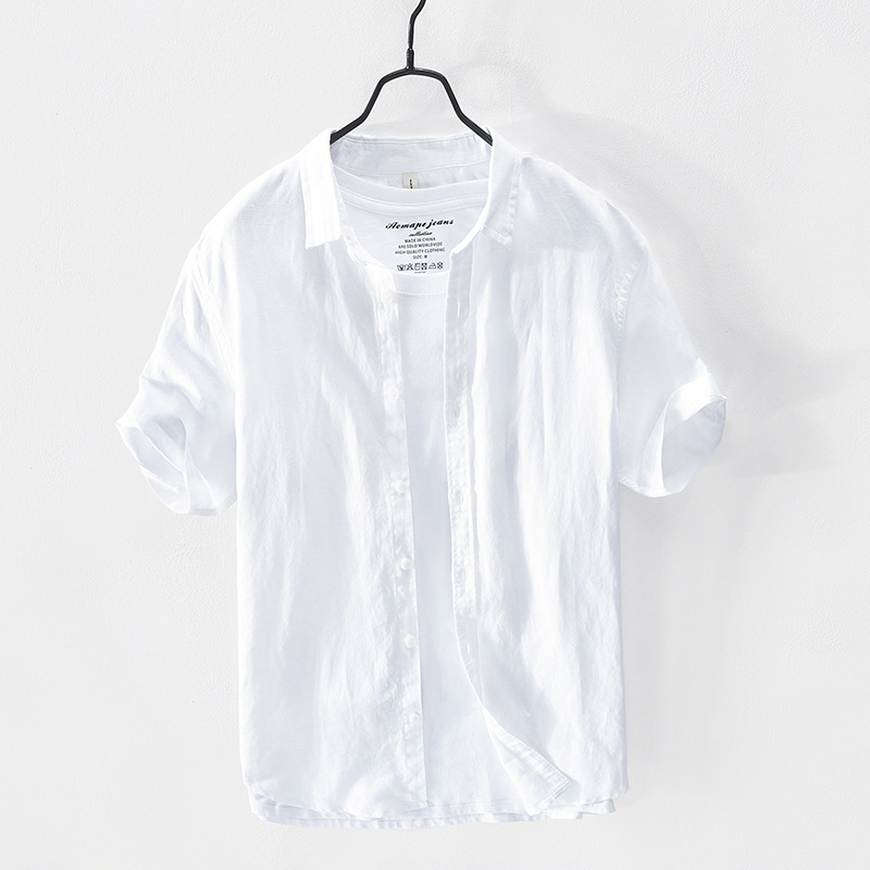 夏の新レトロメンズカジュアルリネン半袖紳士服トレンディなメンズアーバン中年ルーズスクエアカラースラッシュ