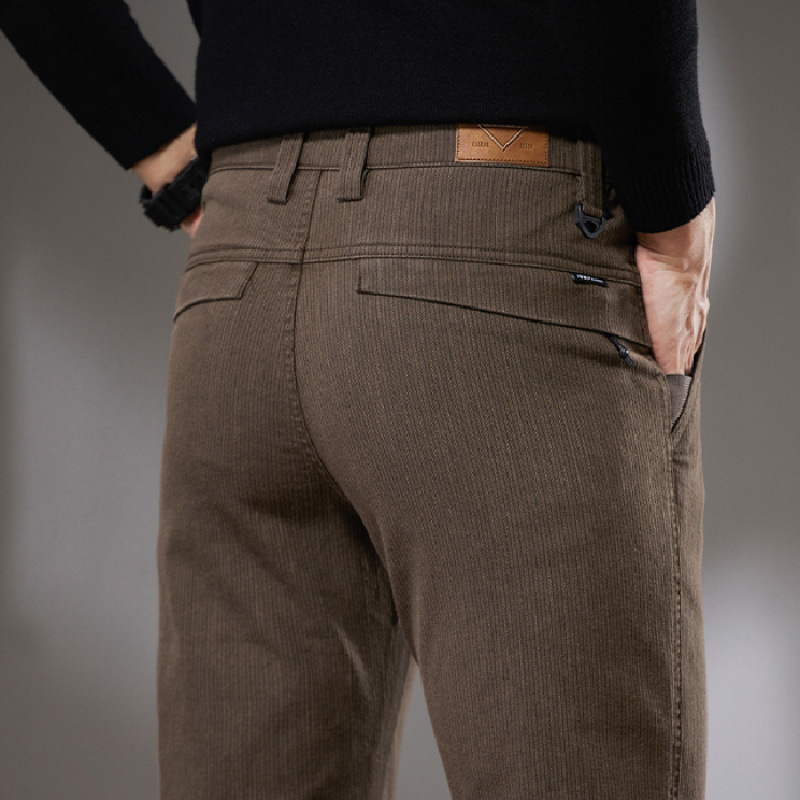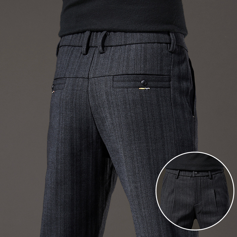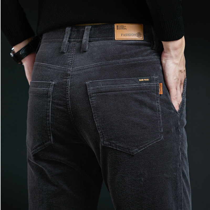 ハイエンドのコーデュロイの濃いストレートのカジュアルパンツの男性の秋の2024の新しいビジネスの弾力性のあるスリムなズボンの男性