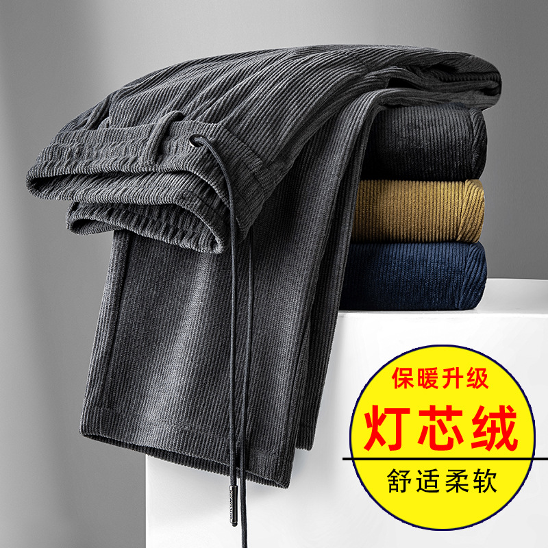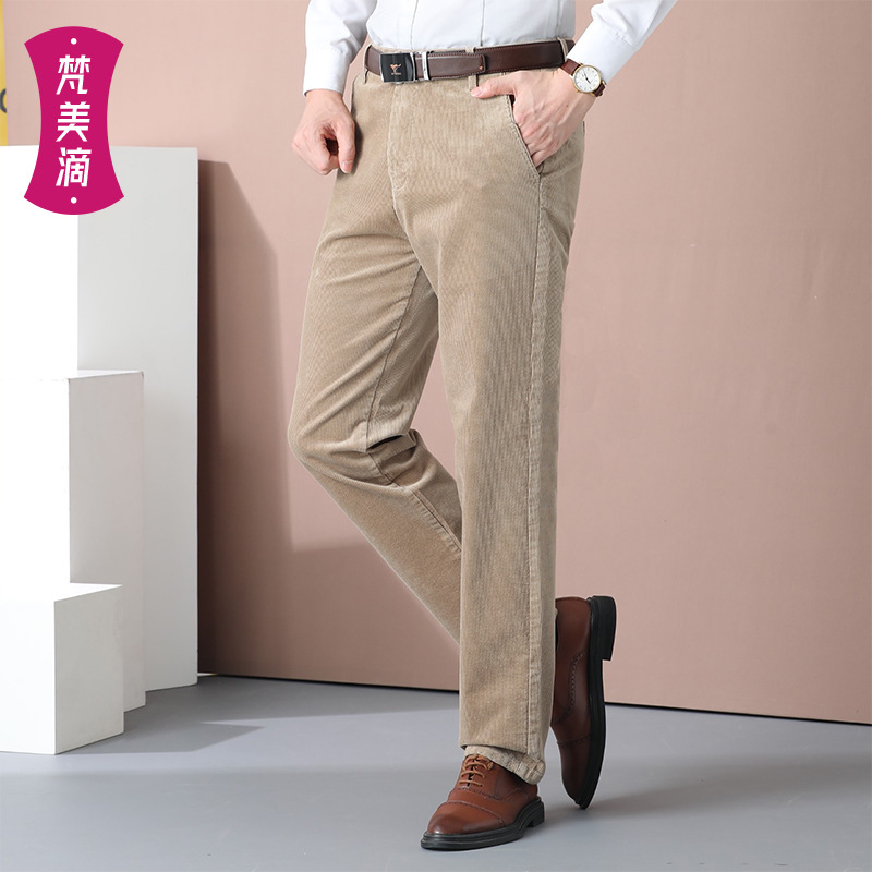 中高年男性ズボンのコーデュロイのストレートズボンのお父さんは春と秋のゆったりした紳士服のズボンのゆったりしたカジュアルなズボンの男を装います。