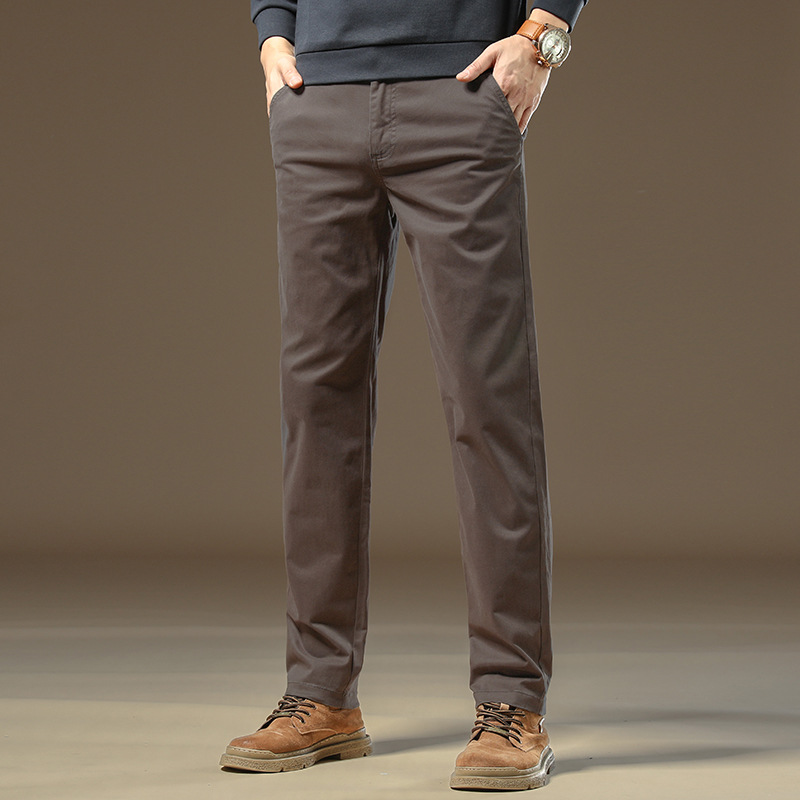 高級純綿男性カジュアルパンツ2024秋冬厚タイプストレートゆるい弾力ビジネス高腰お父さんズボン