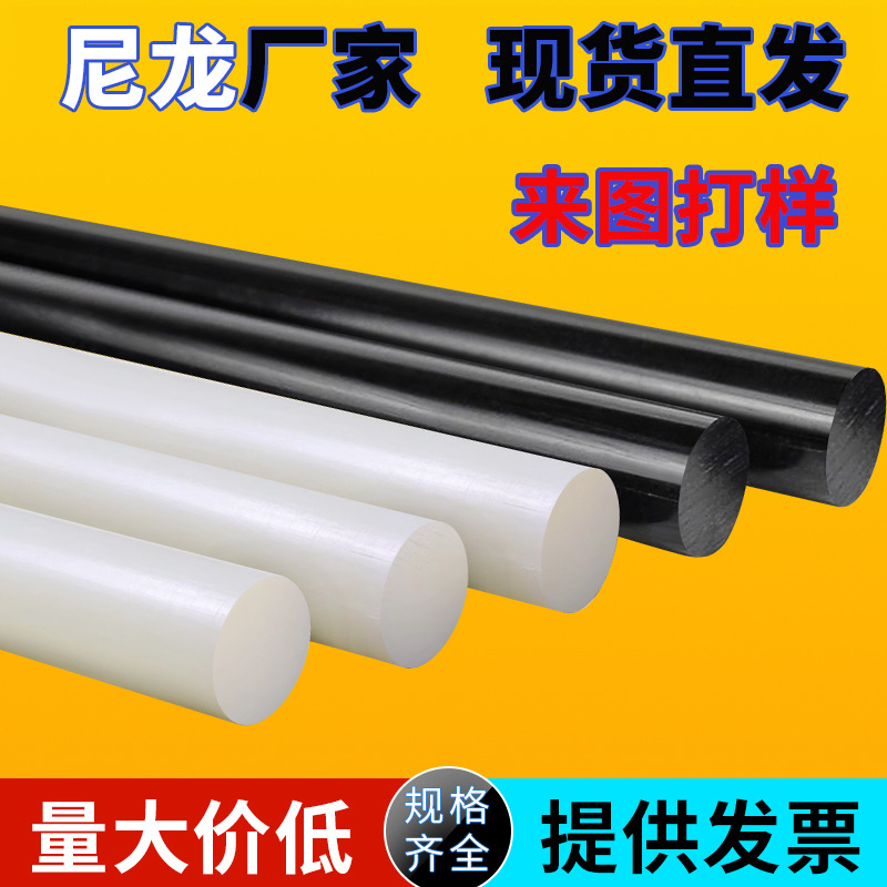 PA66 ナイロンロッド黒白ナイロン固体丸棒加工 PA1010 耐摩耗性大径ナイロンロッド在庫あり
