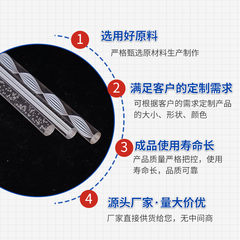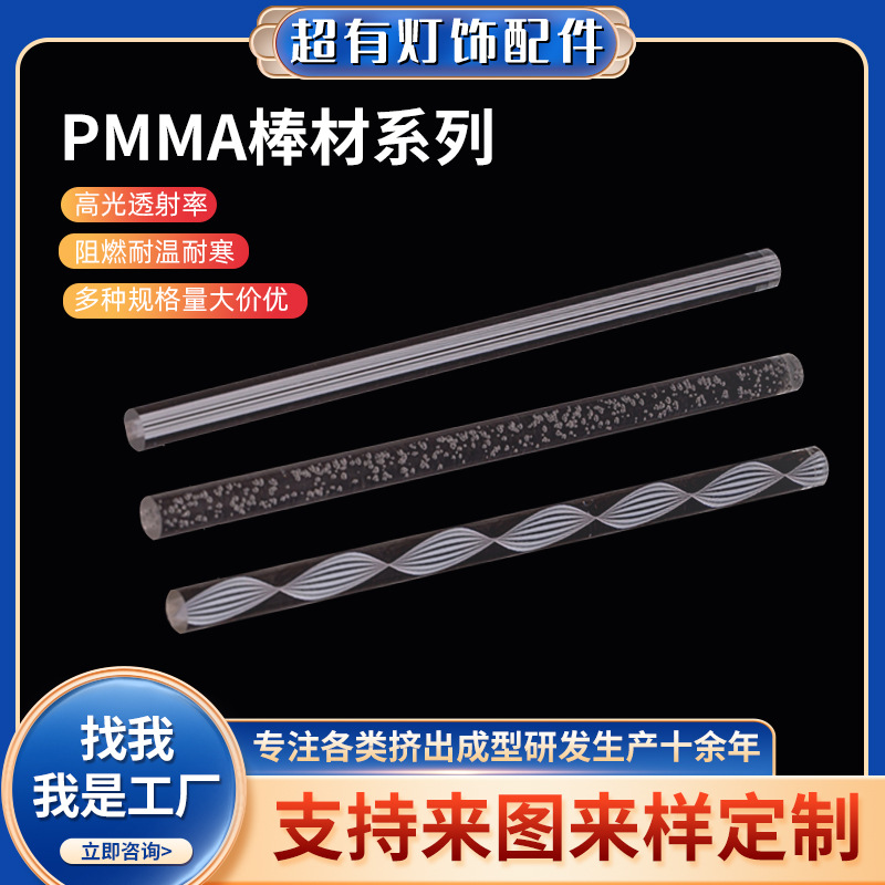 メーカーは透明なカラーアクリルロッド、プレキシガラスロッド、つや消し導光ロッド、角ロッド、丸ロッド、バブルロッドを供給しています。