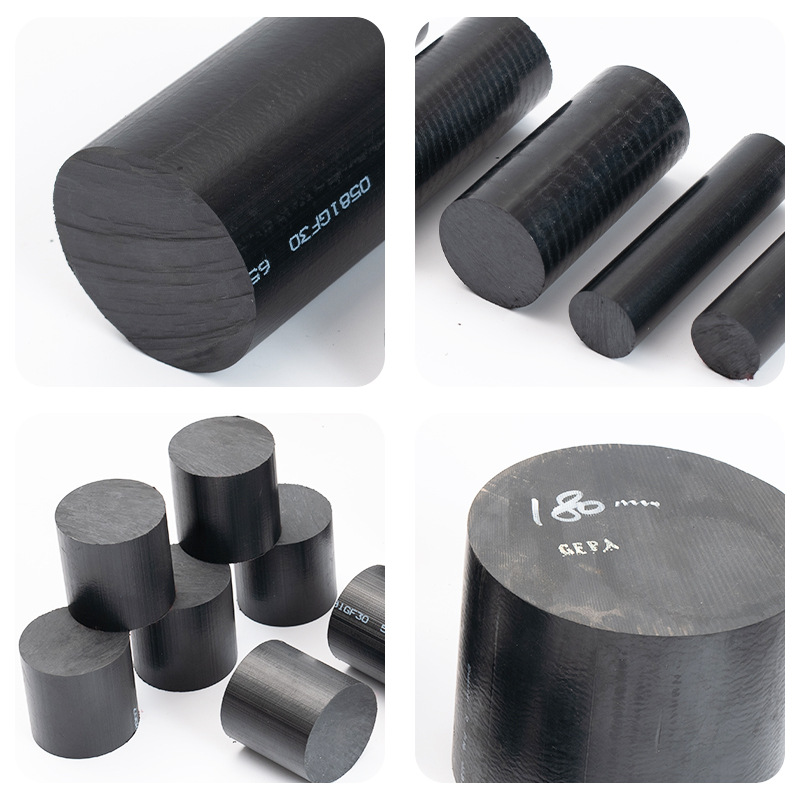高温耐性、帯電防止、ガラス繊維を含む黒色PPSロッド加工 CNC加工ポリフェニルスルフェイドPPSロッド