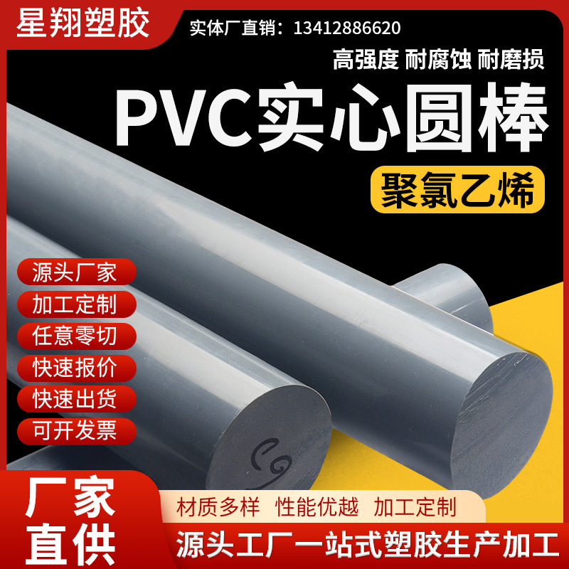 白色PVC棒、赤色ポリ塩化ビニル固体丸棒、黒色UPVC棒、難燃性、耐酸性、耐アルカリ性プラスチック棒加工