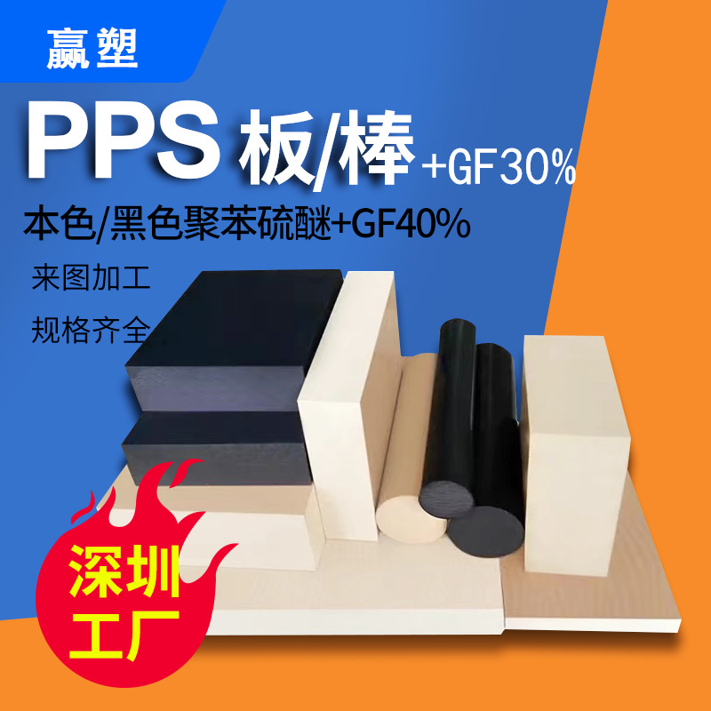 深セン黒繊維強化 PPS バー GF40% 難燃性、耐摩耗性、耐高温性 PPS プレート 35-40-45-50-65mm