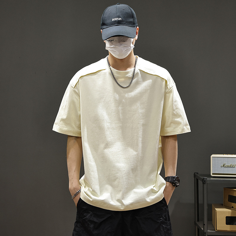 Vネック半袖tシャツ男性2025新型夏綿質薄いファッション半袖上服tシャツ
