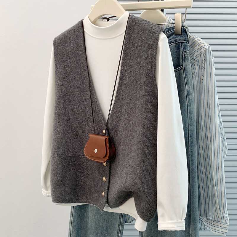 リアルショット既製ニットノースリーブベスト2025秋新作Vネックベスト小柄な人向け