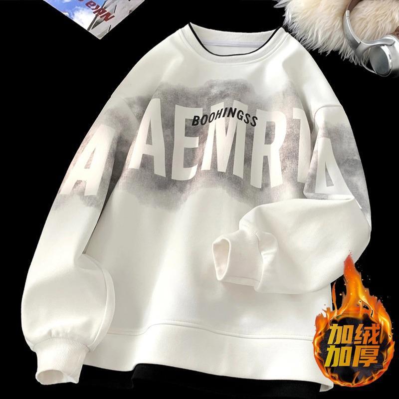 2024秋冬男性のゆったりとした大きいサイズの加肥は、ベルベットのトレンドを大きくして、カジュアルな丸首のガードルをつなぎ合わせます