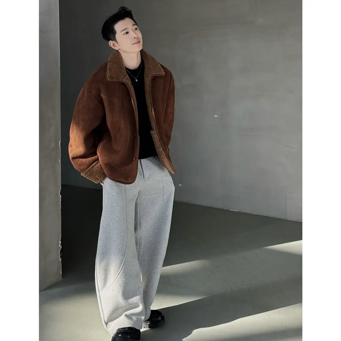 ファスナーのスリムな羊の毛のスタンドカラーのコートの男性の秋冬のゆったりしている大きいサイズの青年の新型の潮流は簡単で通常の金です。