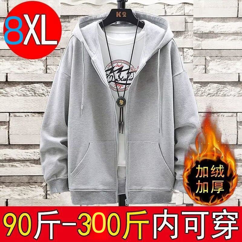 デブのカーディガンは帽子のパーカーの男性の秋冬のベルベットのパーカーのジッパーのコートと太った大きいサイズの外でカジュアルなジャケットを着ます。