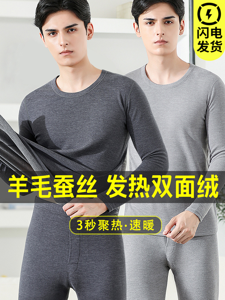 保温下着の男性は痕跡のない発熱秋衣秋ズボンセットが一体になっています。