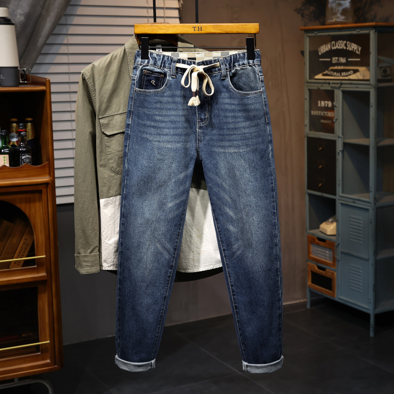 2033 9点ジーンズ メンズ 大きいサイズ アイスシルク 薄手 ウエストゴム ストレート 無地 万能 特大 メンズ 9点パンツ トレンド
