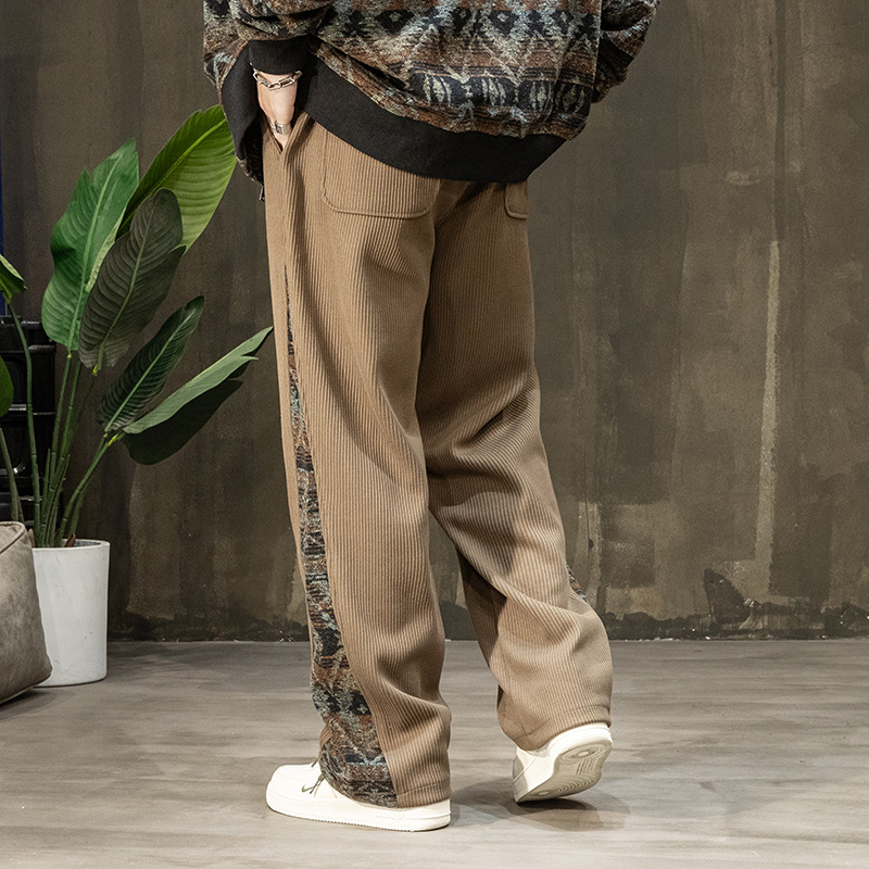 コーデュロイのパッチワークのデザインは男性春秋の新型の大きいポケットのゆったりしている大きいサイズのストレートのカジュアルなズボンです。