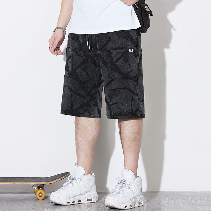 工装半ズボン男子日系ゆるい夏プラスサイズズボン潮牌直筒百合カジュアル広脚七分ズボン