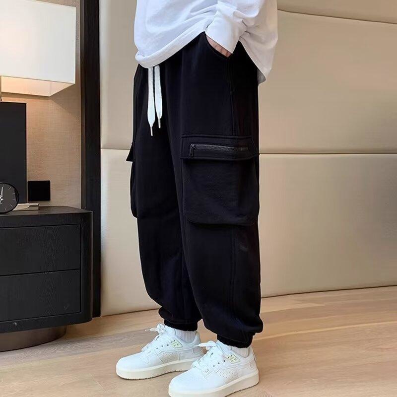 デブの大きいサイズの工装のズボンの男性の秋冬の新型のファッションのブランドのゆったりしているストレートなズボンの香港の風の多いポケットとベルベットのカジュアルなズボン