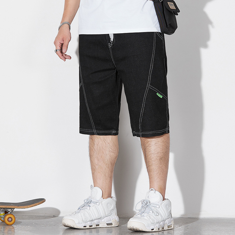 アメリカンデニムショートパンツメンズ夏薄いストレートレッグ大きいパンツプラスファットプラスサイズトレンディファットカジュアル5点パンツ