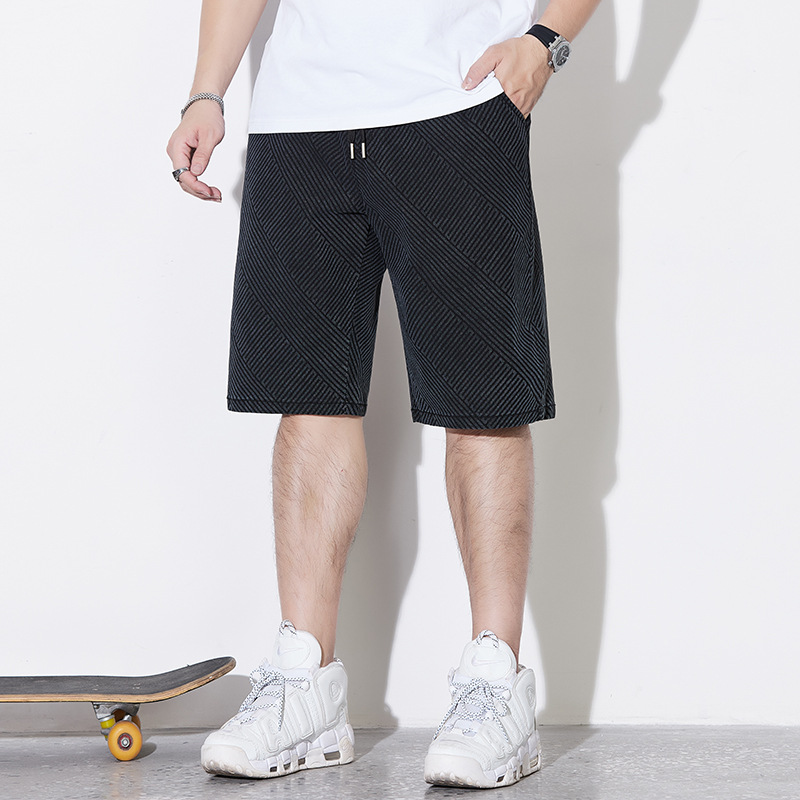 プラスサイズのスポーツショーツメンズ夏のトレンディなブランドルーズカジュアルクォーターパンツプラスファットプラスファットストレートテクスチャミッドパンツ